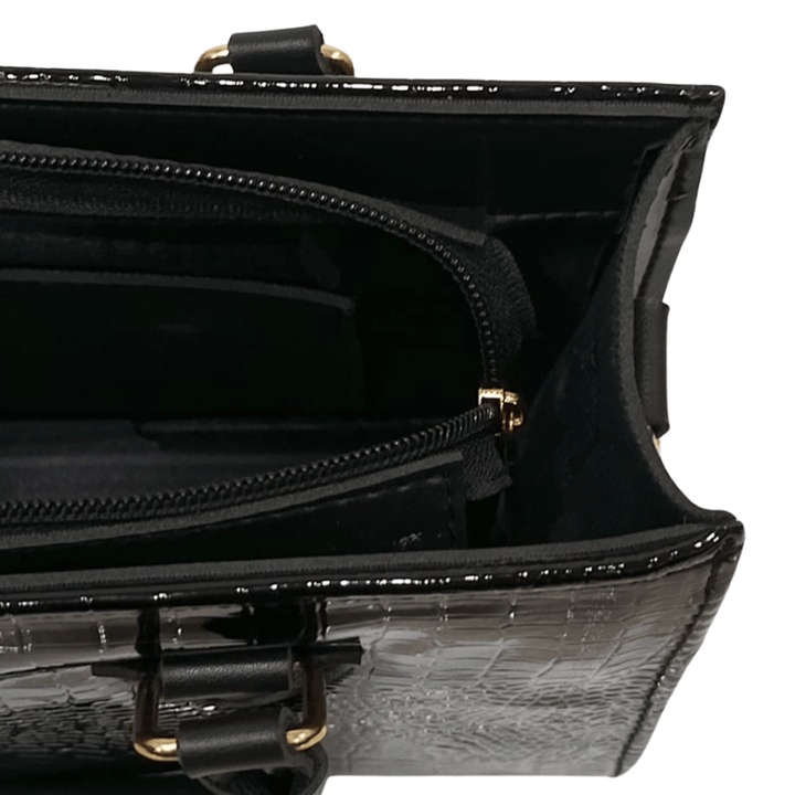 Crafted from glossy crocodile-textured Rexine, this smart shoulder bag is where elegance meets edge. Designed to function both as a chic handbag and a statement shoulder piece, it?s perfect for day-to-night transitions. The sleek silhouette, luxe finish, and just-right size make it your go-to for effortless style and everyday glam.
