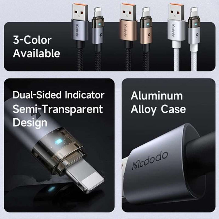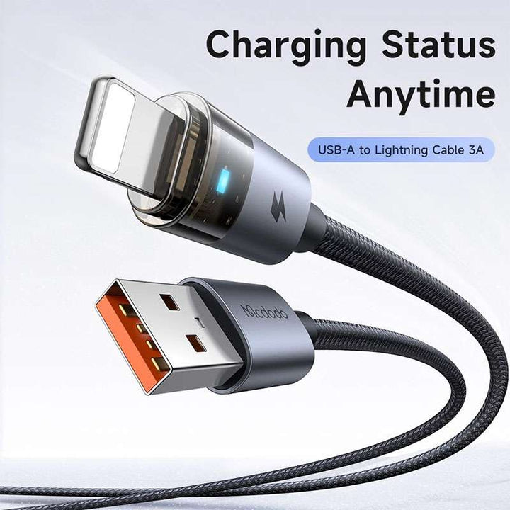 Mcdodo Transparent USB-A to Lightning Cable with LED 1.2m - Black