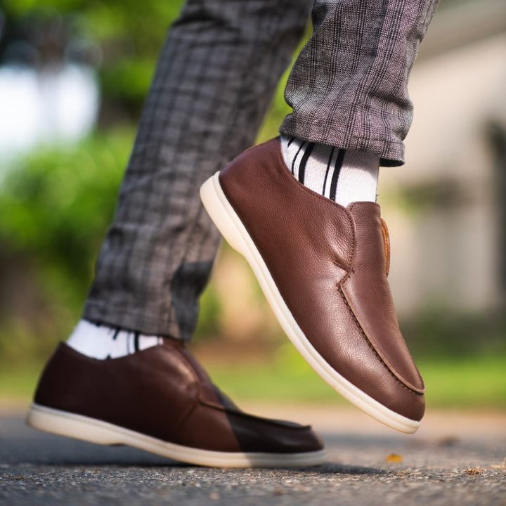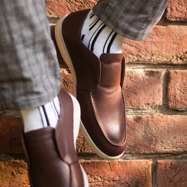 Material: Real Leather Inner Sole: Real Leather Outer Sole: White Sole Color: Dark Brown