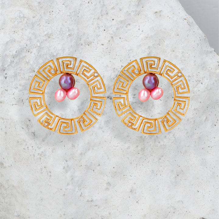 Embrace the new era of timeless jewelry designs with the creativity of our Meraki Earrings. Exclusively handcrafted for you to make a bold statement, mesmerizing motif of Greek patterns with the adornment of classic colored baroque pearls. Pair this with the matching necklace and declare your individuality.