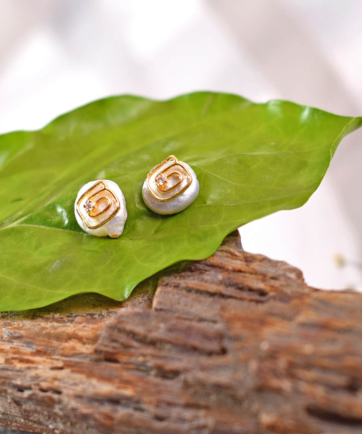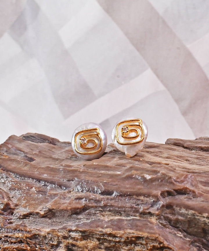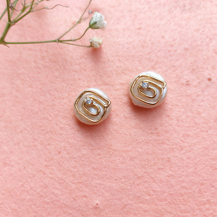 Dainty studs to ornament your ears with, Mini Zeta is made with Coin Pearl topped off with a unique spiral design which makes it a piece that you'll keep forever.
