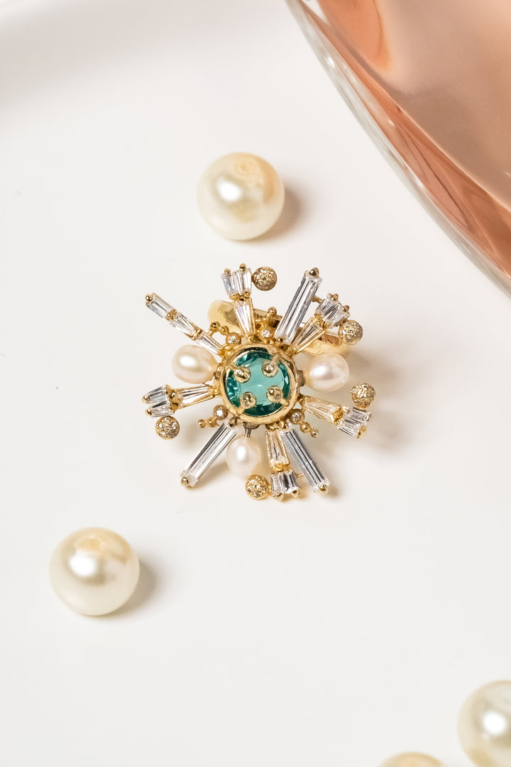 Oh! So Beautiful! This is surely one of a kind artistic piece. The starry look of this statement piece and the bits attached to it, could be the game changer for your evening look.