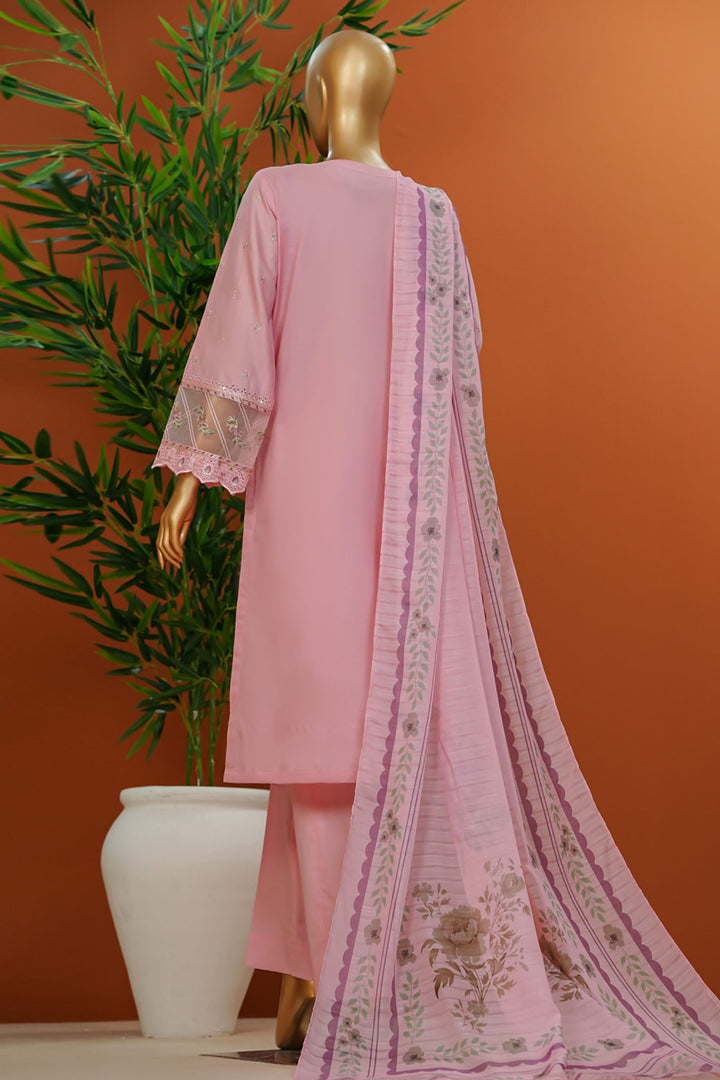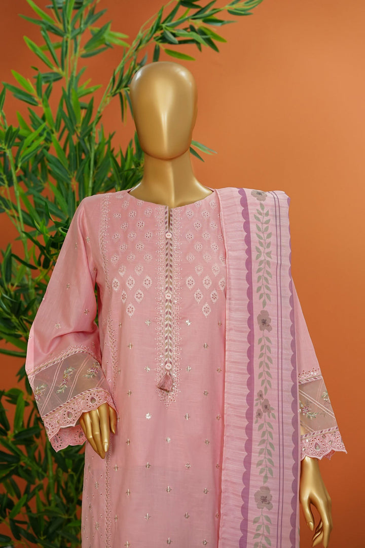 Muse By HZ Stitched 3 Piece Emb Cotton Slub Vol-01 Collection'2025-SSE-105-Pink