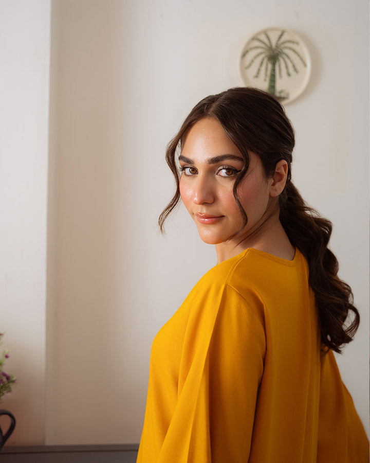 The Abstract Affair By Qariney Stitched 2 Piece Winter Collection'2024-Mustard