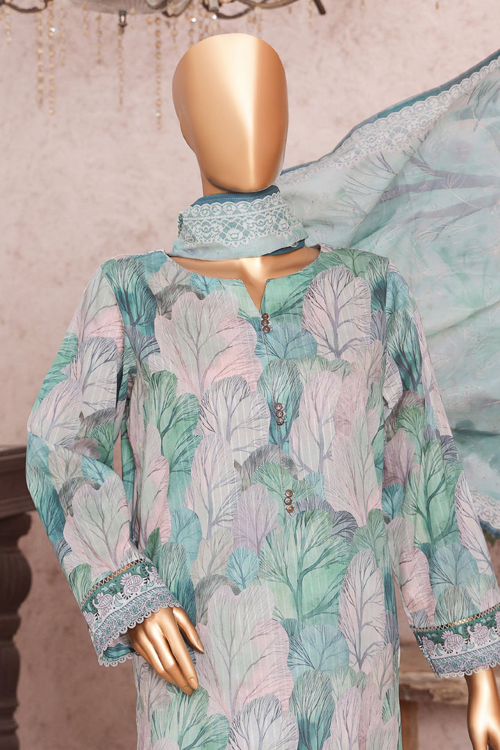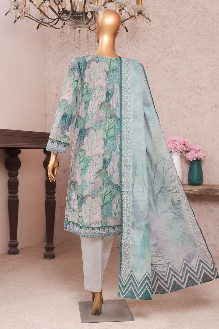 - Digital Printed Doriya Embroidered Cotton Lawn Shirt