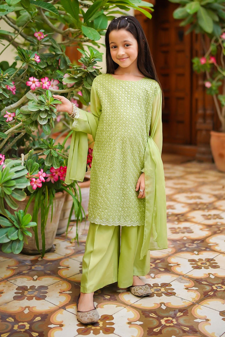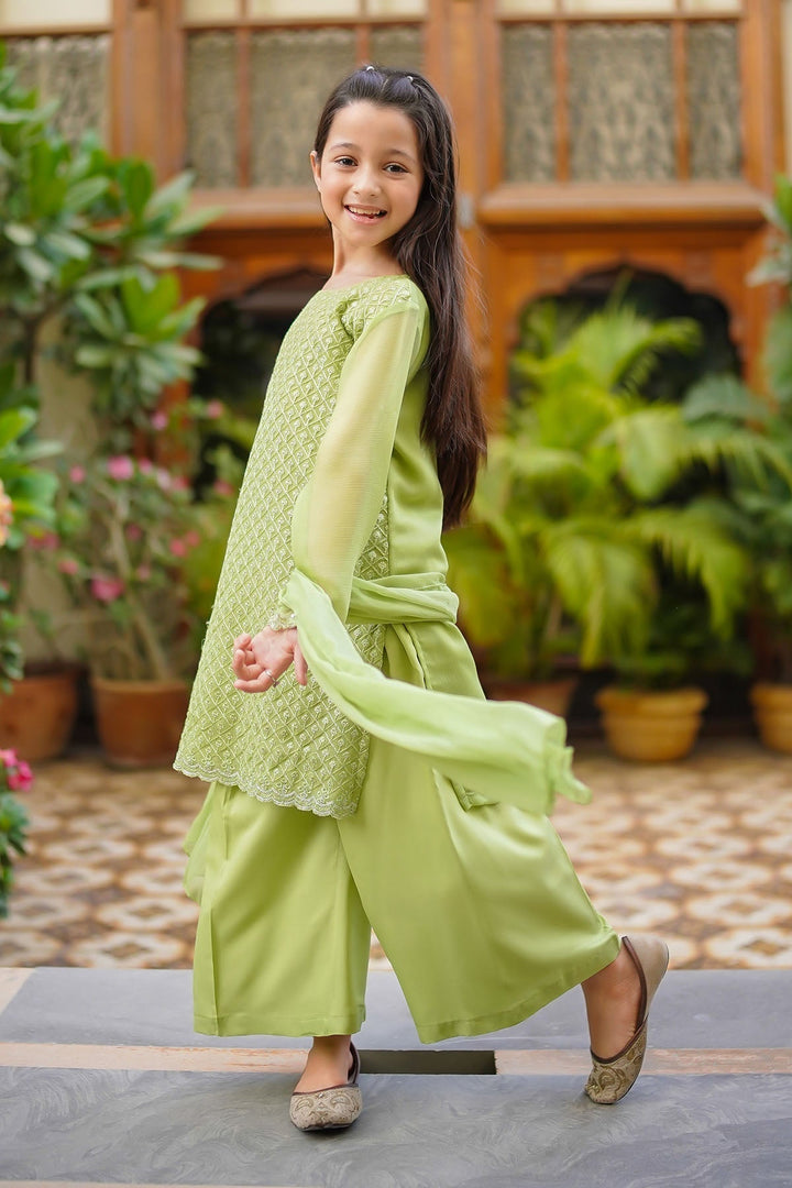 Ochre Clothing Toddlers Eastern Chiffon Embroidered 3 Pc Suit