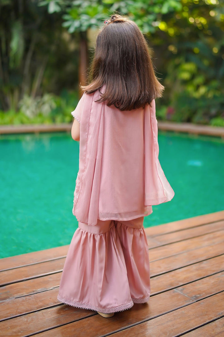 Bottom: Tea Pink Malai Crepe Gharara Pants With Embroidery Lace