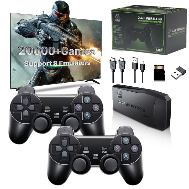 New M8 Wireless Retro Game Console M8 Plug and Play Video Game Stick Built in 10000+ Games - 9 Classic Emulators 4K High Definition HDMI Output for TV with Dual 2.4G Wireless Controllers -64 GB Memory Card-