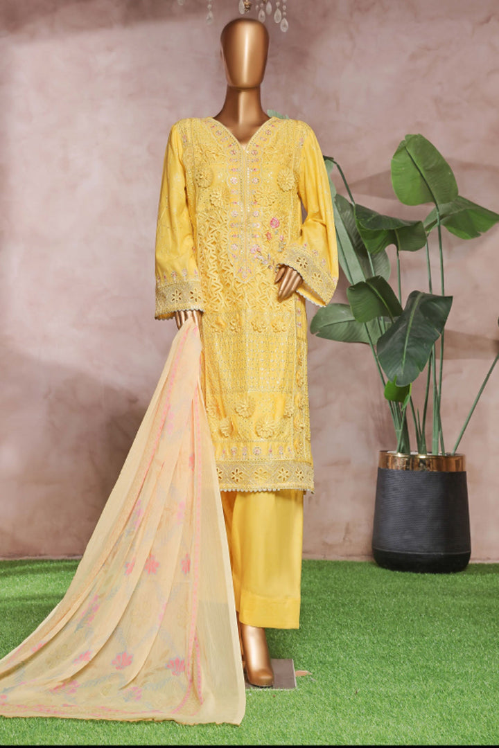 Bin Saeed Stitched 3 Piece Luxe Self & Self Collection'2025-NSM-2223-Yellow