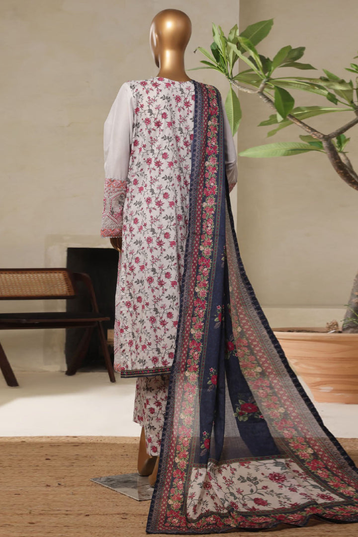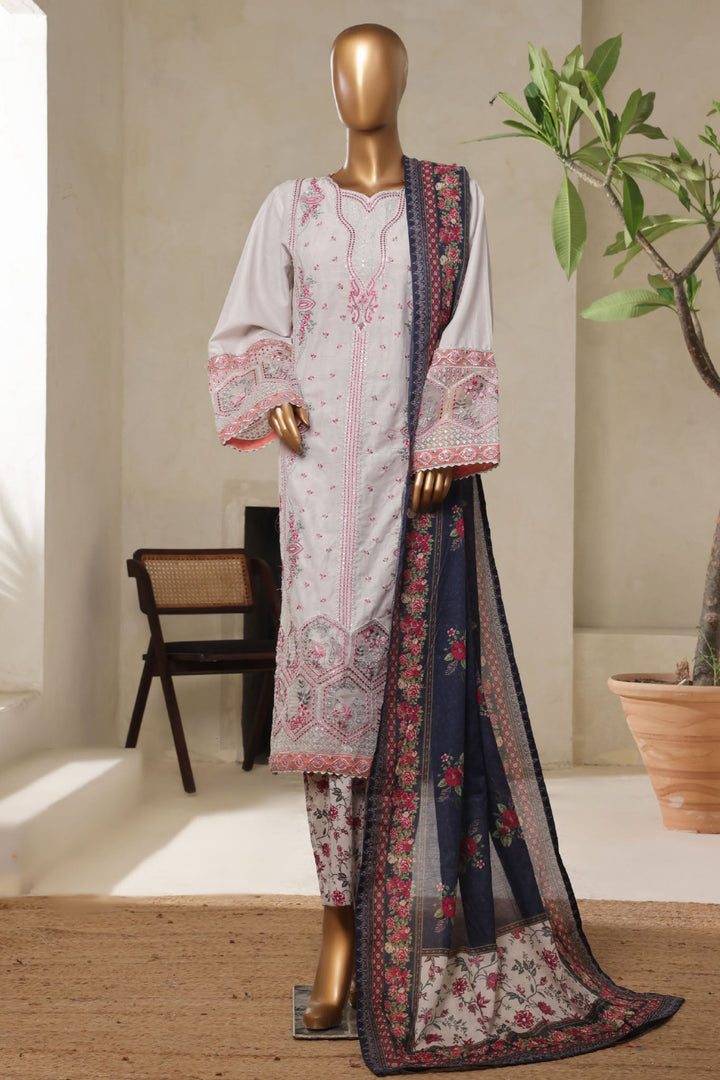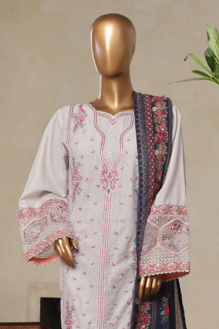 Bin Saeed Stitched 3 Piece Luxury Plain Cotton With Printed Back Vol-02 Collection'2025-NSM-2226-White