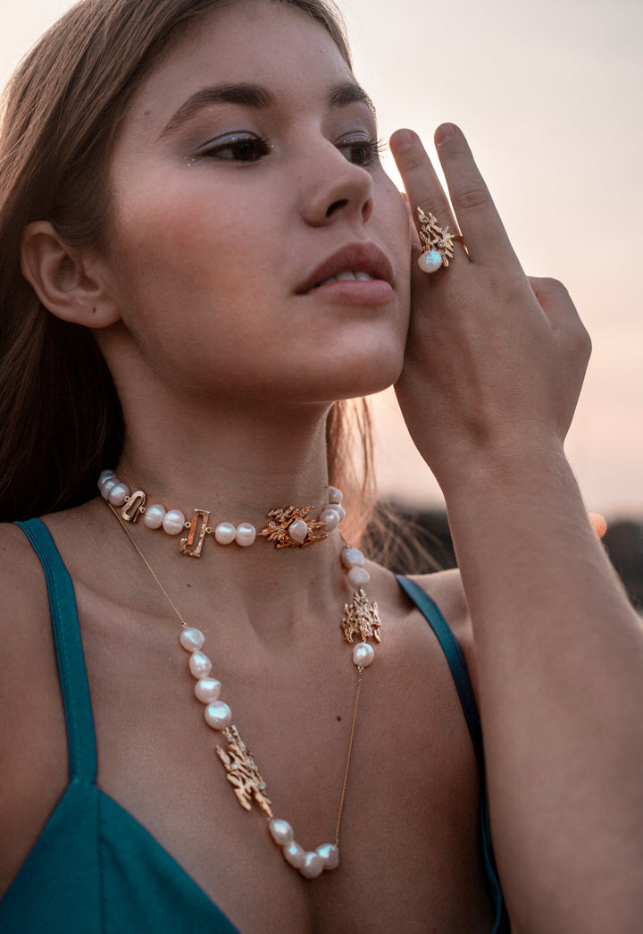 Layer the exquisite Oak Reef choker with our Oak Reef necklace, intricately designed with oak motives, the detailed finesse adds the perfect glam to your evening look.