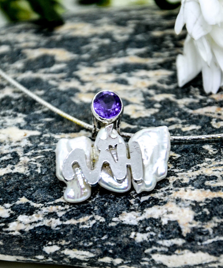All glory to Him. And to Him we shall return. This pendant is your daily gratitude reminder. Made with Biwa Pearls and Natural Golden Topaz, topped off with ALLAH hand-carved in Arabic scripture.