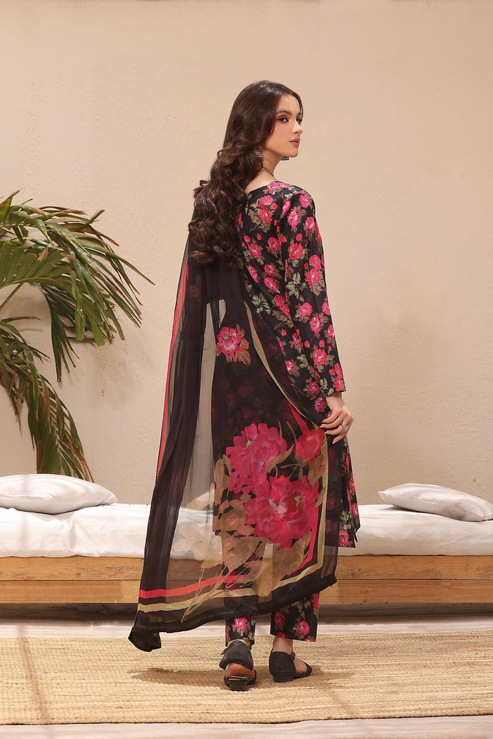 The article includes:Unstitched 3PCDigital Printed Shirt 3 yardsDigital Printed Chiffon Dupatta Digital Printed Trouser 2.5 yards