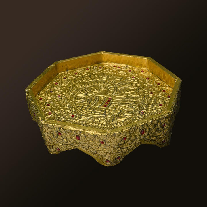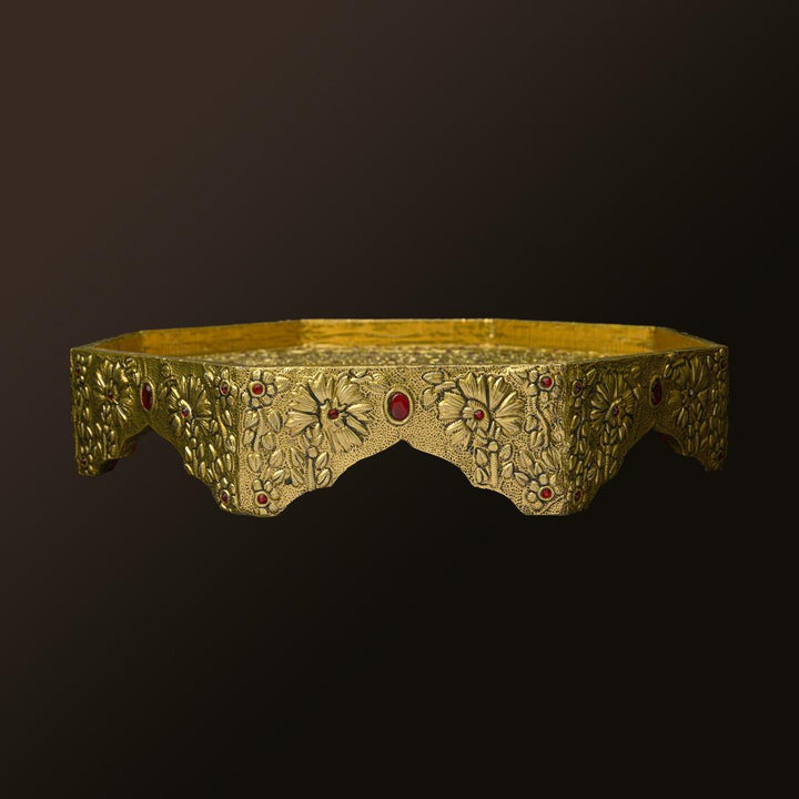 Whether you're hosting gatherings or simply enhancing your home aesthetics, our Golden Medium Ottoman Tray is crafted to make a statement. Elevate your living space with this exquisite piece, where form meets function in a perfect blend of sophistication and utility.