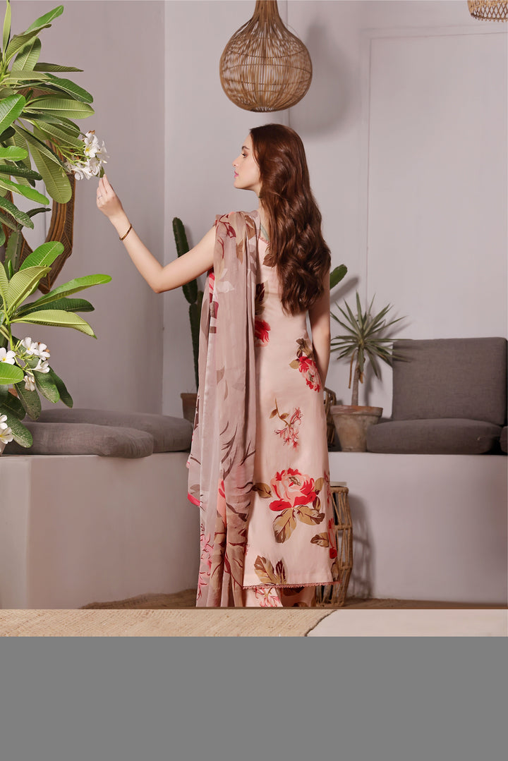 The article includes:Unstitched: Digital Printed Shirt (3 yards)Digital Printed Trouser (2.5 yards)Digital Printed Chiffon Dupatta (2.5 yards)Fabric Type: LawnNote: To get the same stitching style, please purchase our two dresses.Disclaimer: Actual product color may vary slightly from the image.