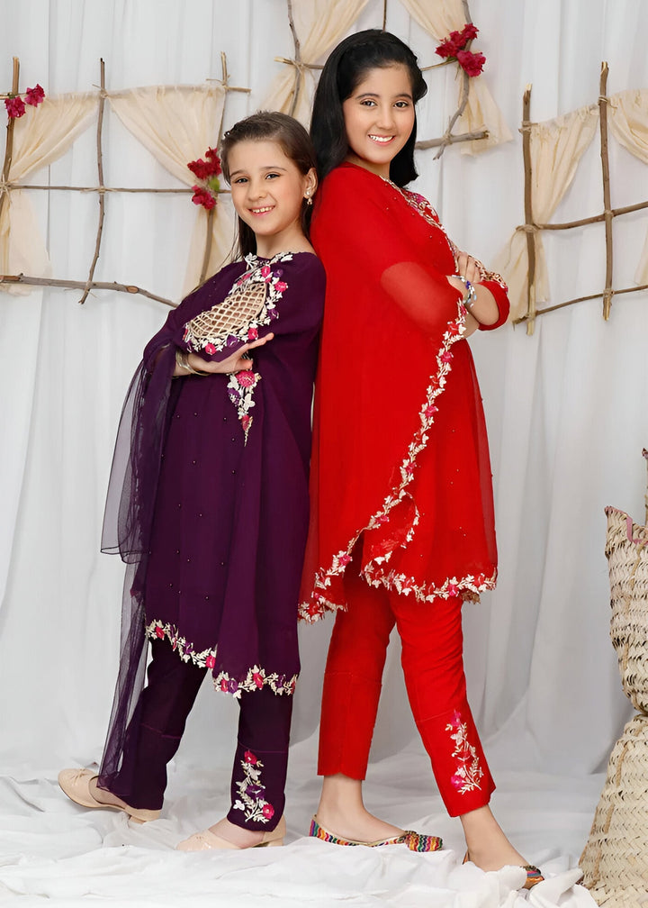 Modest Stitched 3 Piece Formals Kids Collection'2025-Pearl Cape Shirt - Purple