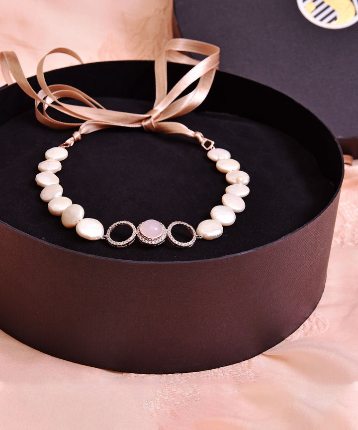 Let the flowers bloom in the gardens because this ethereal bliss is enough to grace your neckline. Made with Natural Pink Quartz and Coin Pearls, what else do you need to create the perfect look?