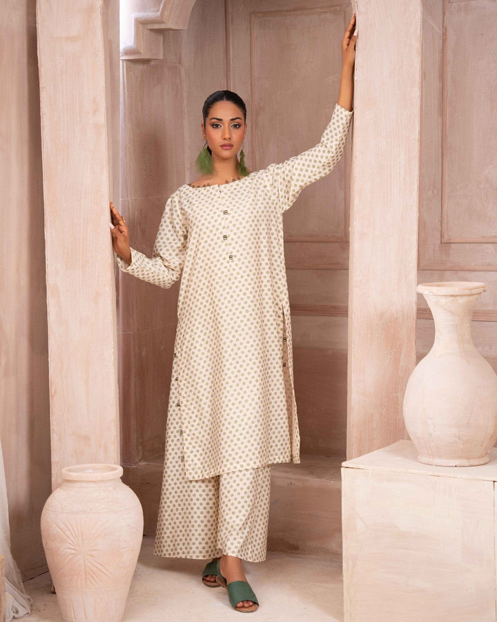 Ayla Studio Stitched PRINTED ESSENTIAL CO-ORD - Pistachio Cream