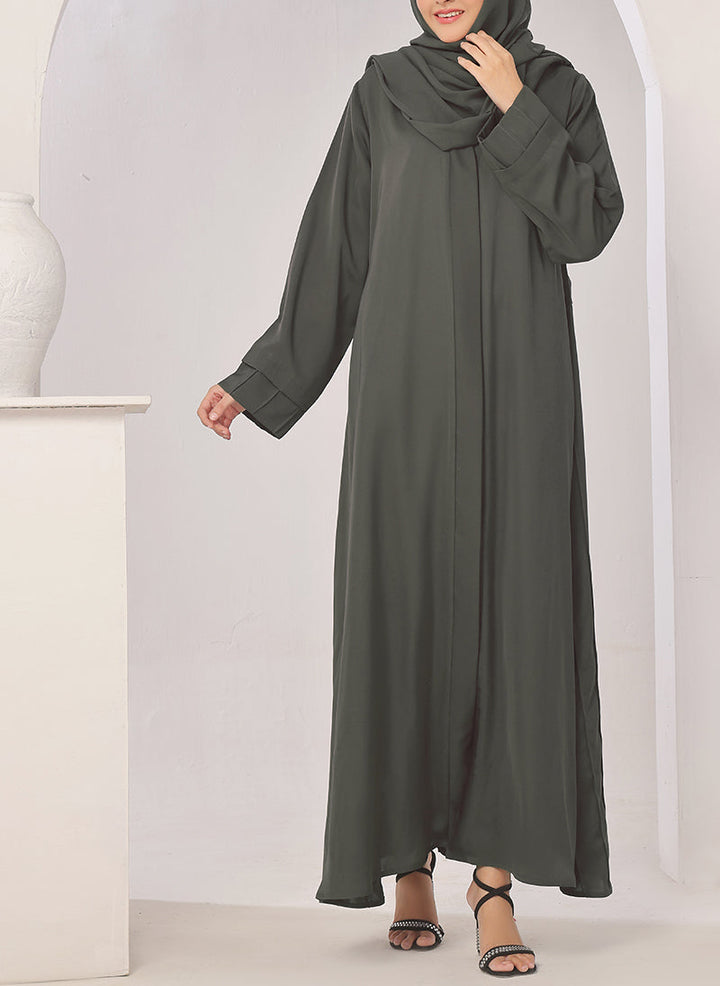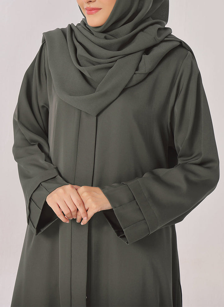 This Plates Front Open Grey Abaya is a stylish and versatile addition to any wardrobe. The unique plate front design adds a touch of elegance, while the convenient front opening allows for easy wear. Made with high-quality materials, this abaya offers comfort and durability for long-lasting use.