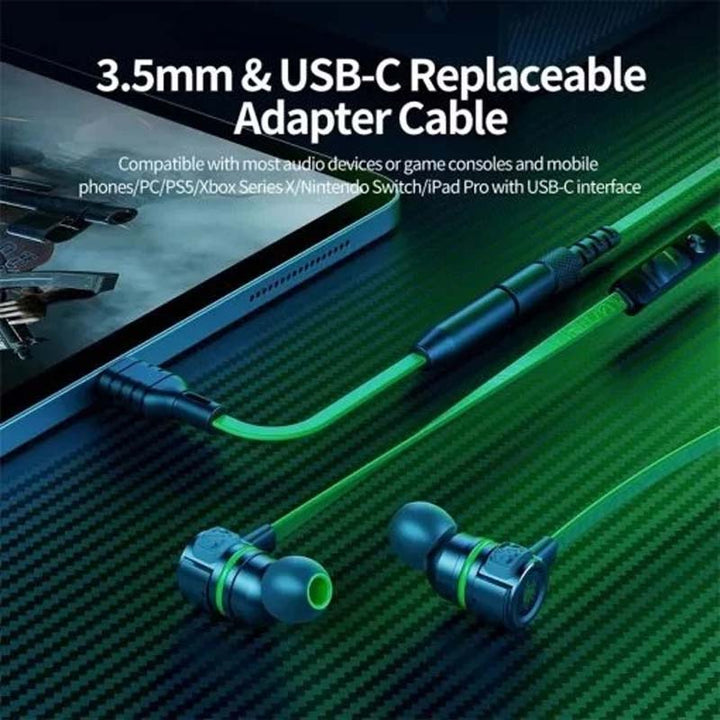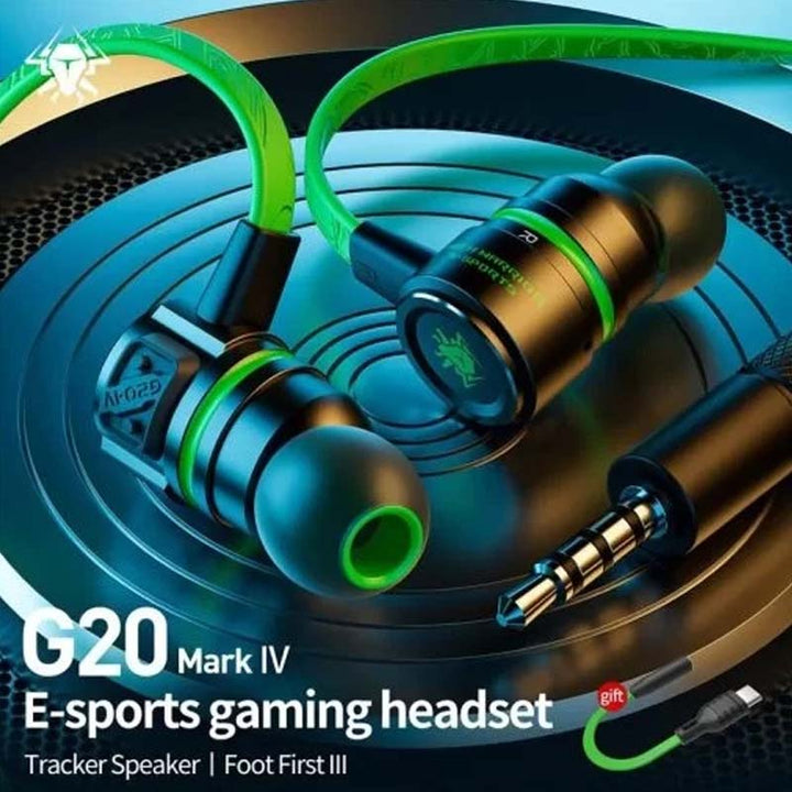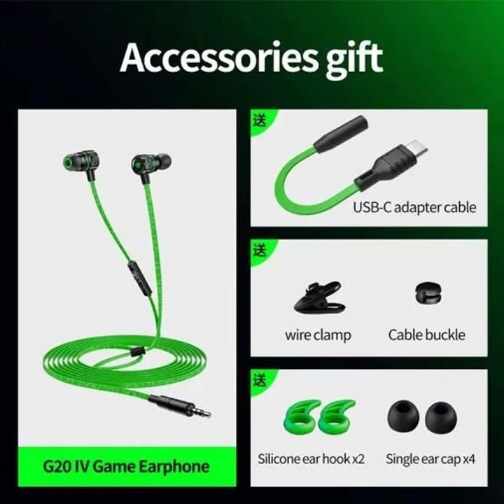 Plextone G20 Mark IV Metal Bass Magnetic Hammerhead Noise Cancelling In-Ear Gaming Earphones Headset with Type C and 3.5mm Jack - Green
