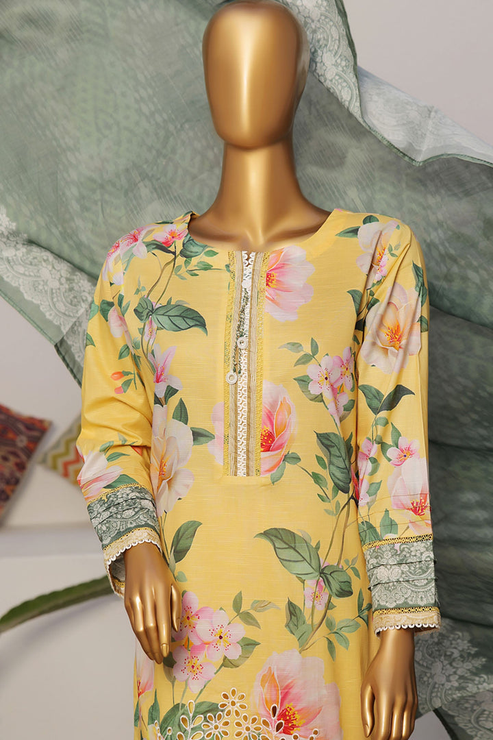 Printkari By HZ Stitched 3 Piece Emb Slub Cambric Collection'2024-CPK-801
