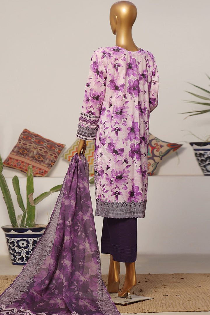 Printkari By HZ Stitched 3 Piece Emb Slub Cambric Collection'2024-CPK-808