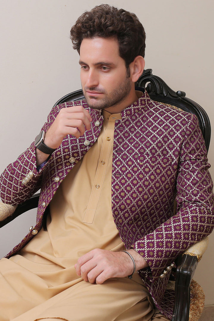 Formal Style Prince Coat for Men , Raw Silk Fabric , With Rich Embriodrey Design in Zari Work , Special for Festive And Wedding Wear