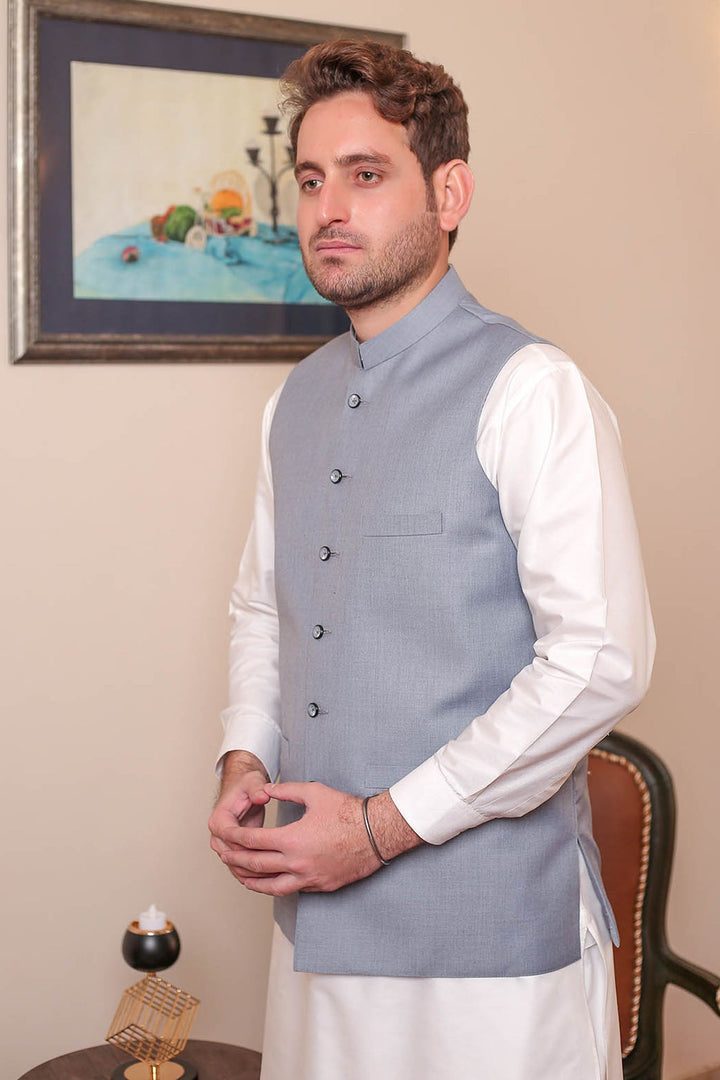 Formal Style Waist Coat for Men , Elegently Weaved Suiting Fabric in Ash Grey Colour , Special For Office , Daily and wedding wear