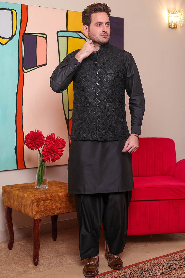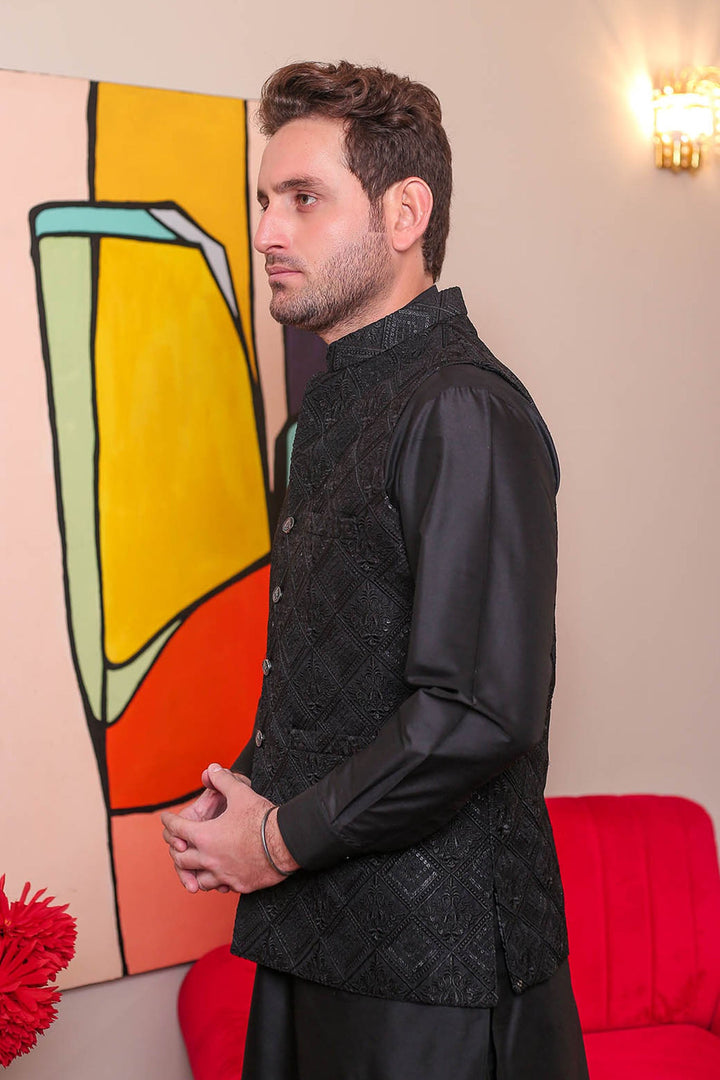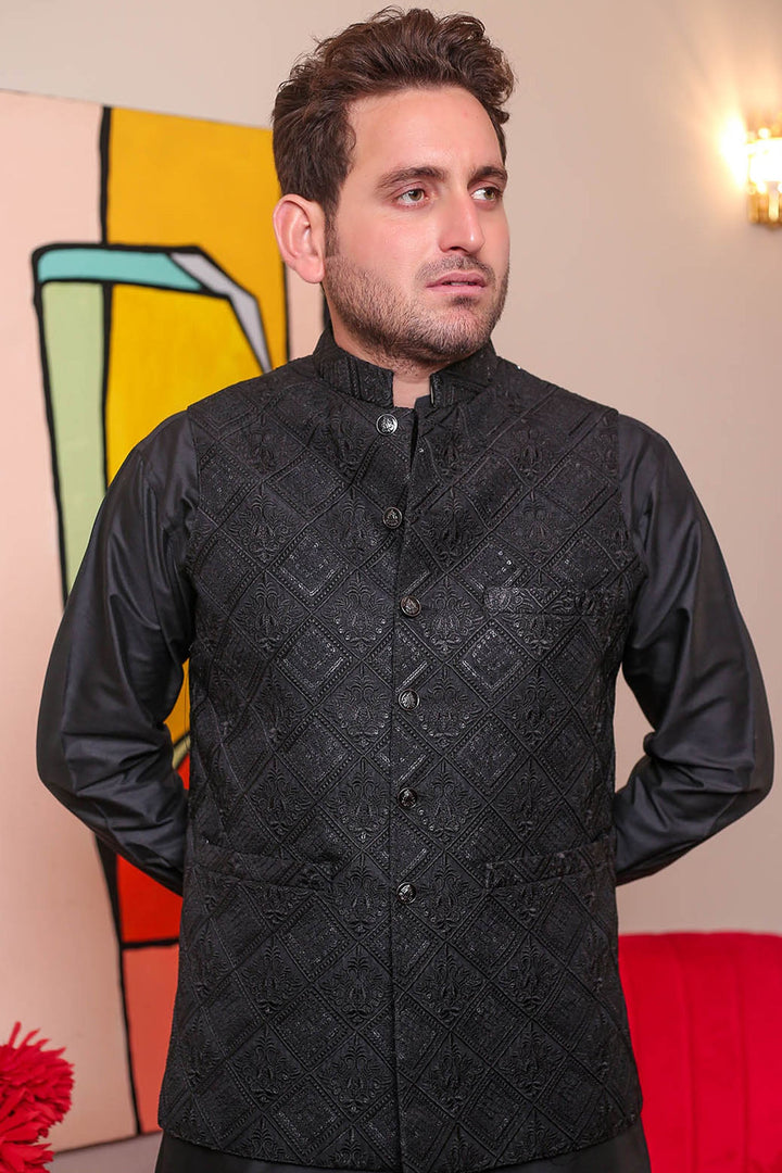 Formal Style Waist Coat for Men , Elegently Designed Raw Silk Fabric with Rich Matching Colour Embriodrey ,Special For festive and wedding wear
