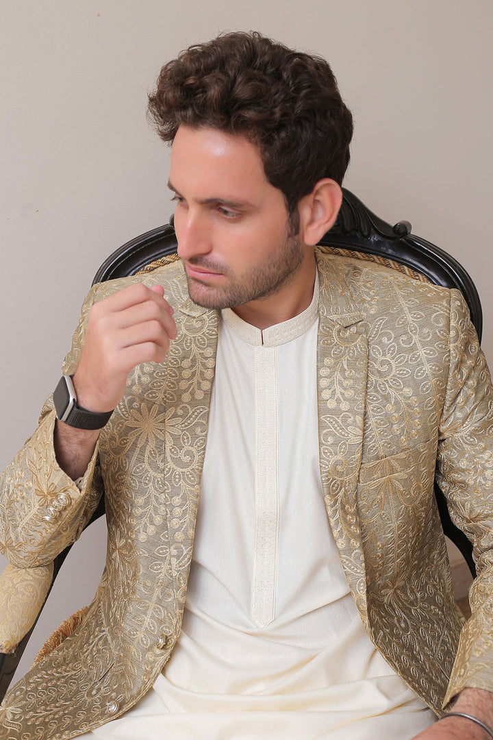 Formal Style Wedding Coat for Men , Raw Silk Fabric , Matt Finish Fabric , With Thread Work Embriodrey , Special for Festive And Wedding Wear