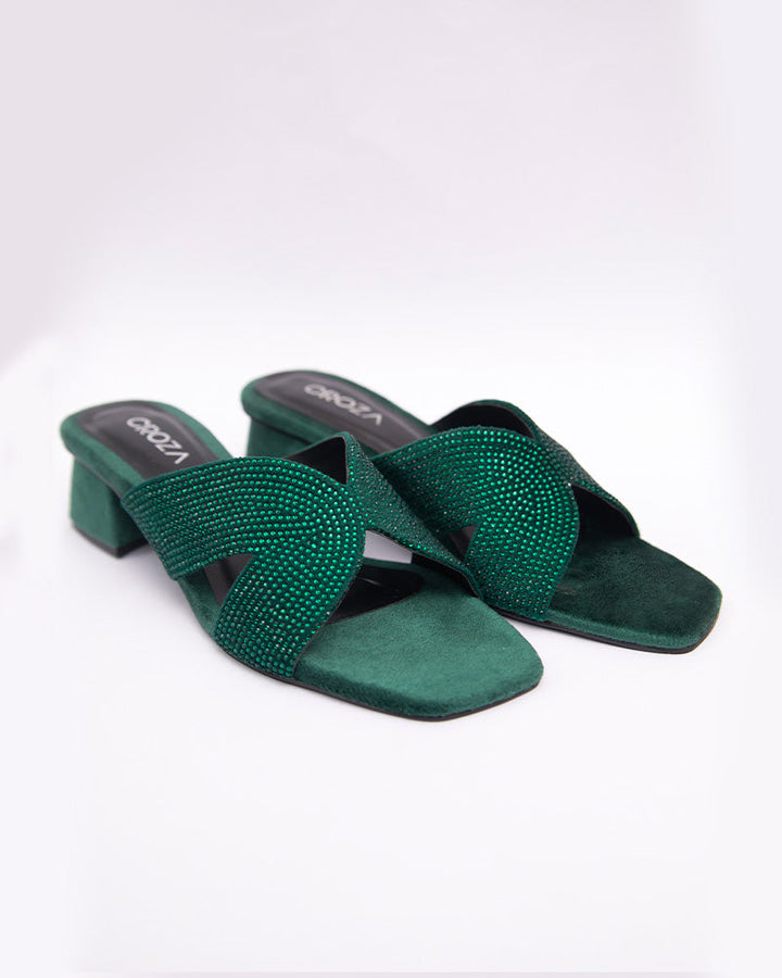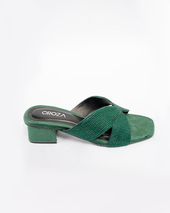 Details: Embellished with crystals, these block heels are made on a synthetic velvet insole for extra comfort