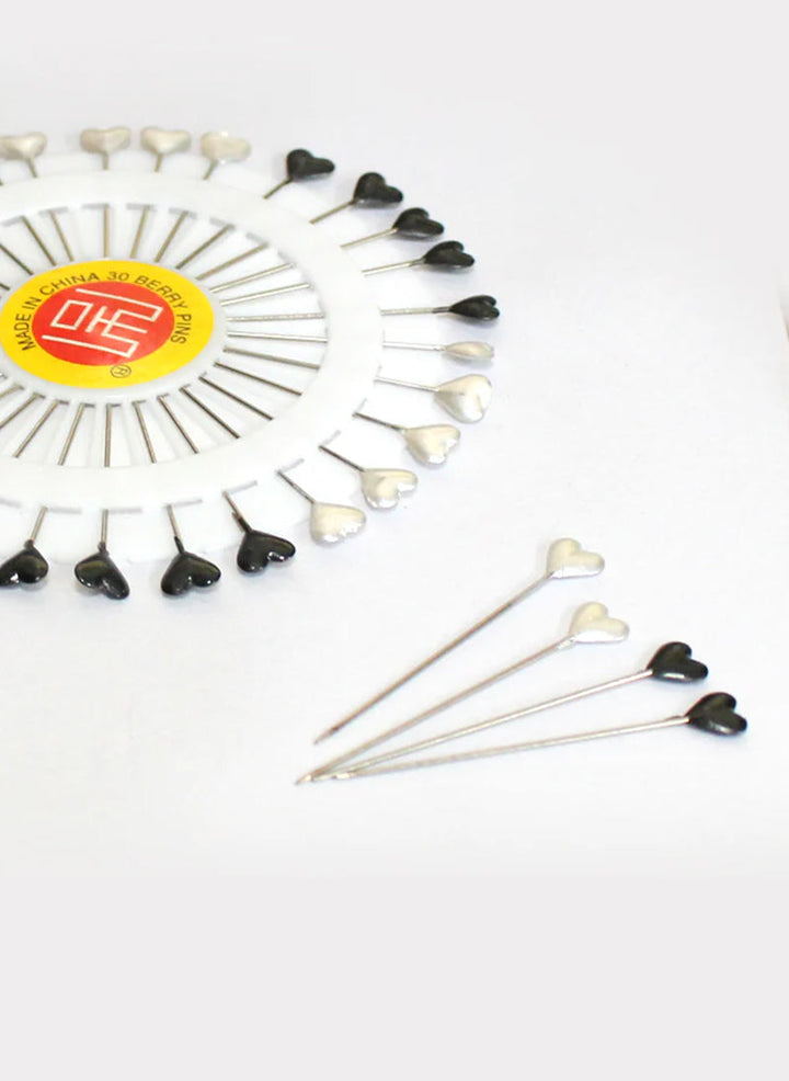 Hijab Ul Hareem Ring Pins Big 30 Pcs Pkt Black & White Heart Shaped