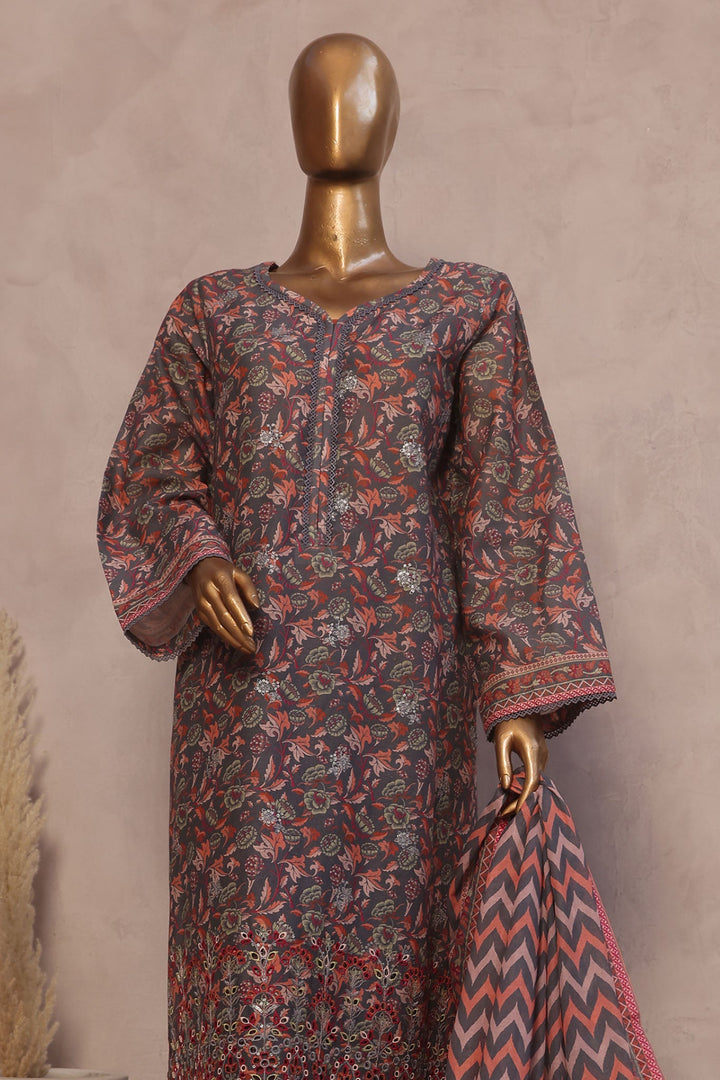 Ronaq E Eid By Bin Saeed Stitched 3 Piece Exc Emb Lawn Collection'2025-SM-1888-Dark Grey