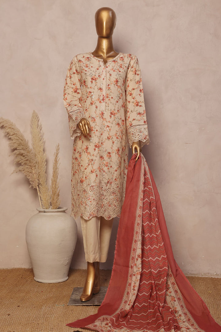 Ronaq E Eid By Bin Saeed Stitched 3 Piece Exc Emb Lawn Collection'2025-SM-1891-Skin