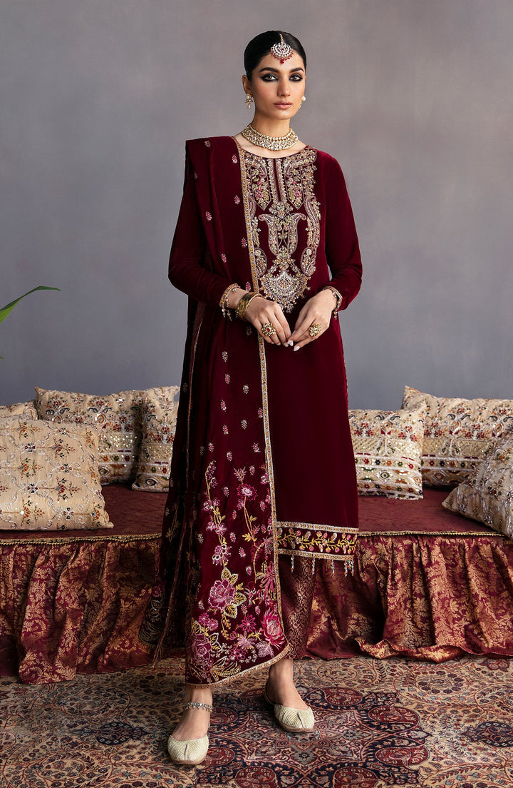 Velvet Embroidered Back,Sleeves and Shawll Lace.