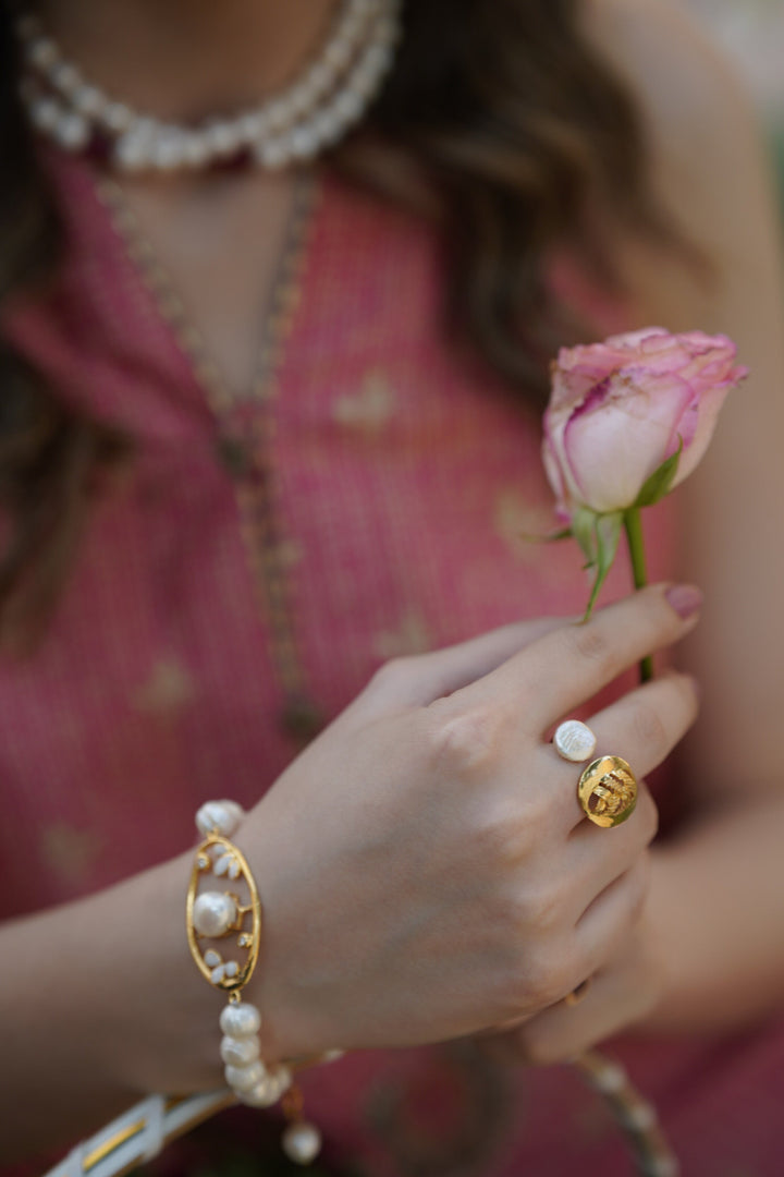 "Red and White never get out of fashion! The jaw-dropping Red Agate with Real Freshwater Potato Pearls adds class to your basic look. Pair this bracelet with matching earrings, the epitome of a fashionable woman.
