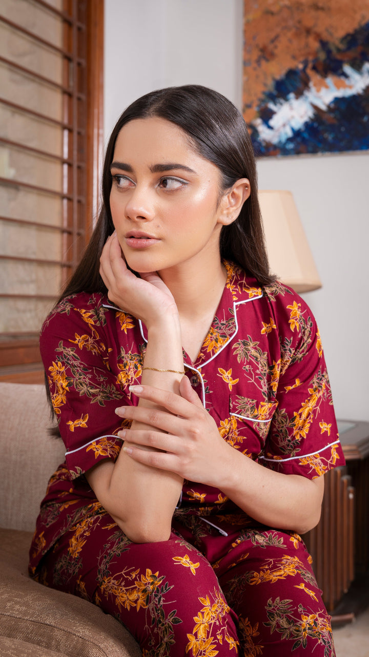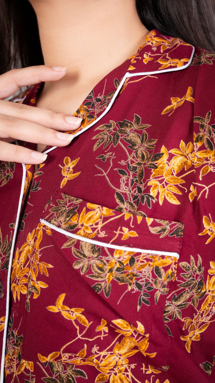 Royal Leaves Half Sleeves PJ Set