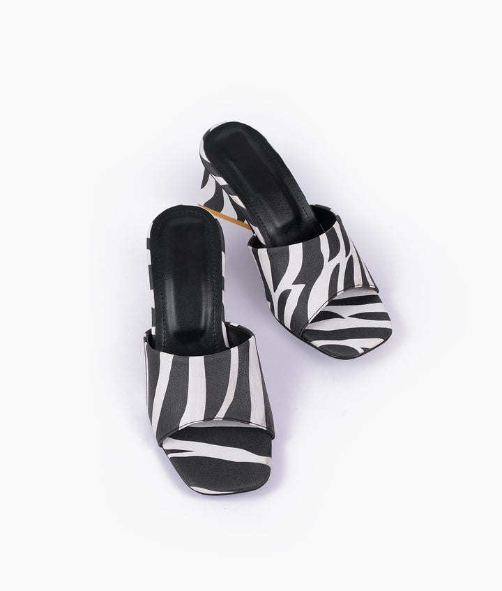 Make a bold statement with these zebra heeled mules an essential addition for any chic occasion Featuring a striking pattern and a fashion forward design these mules are perfect for those who dare to stand out with confidence and flair.