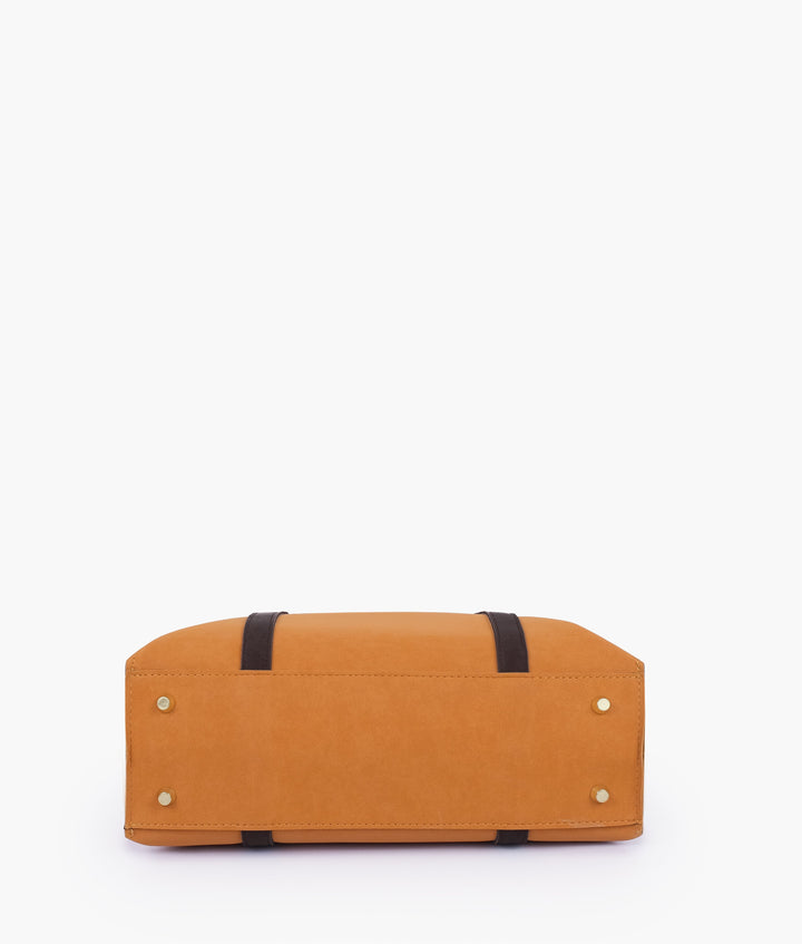 RTW Creation - Mustard and dark brown mocha suede double-handle tote