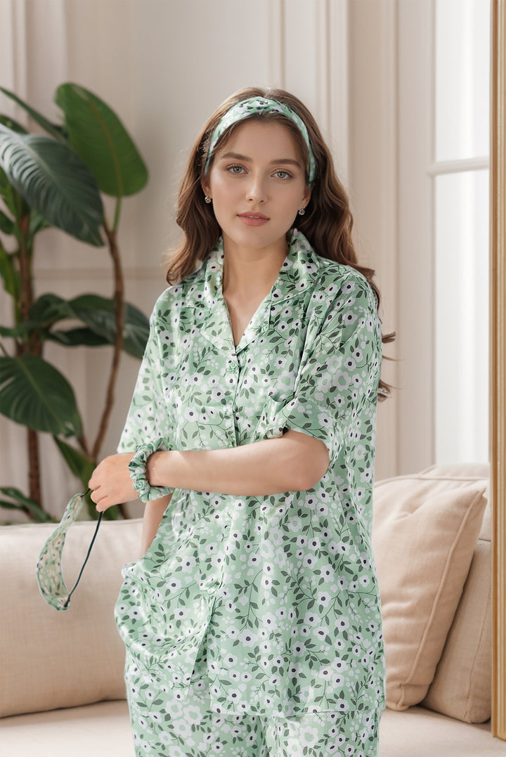 - Silky Finish: Crafted from high-quality silky fabric, this pajama set provides a smooth, soft touch that enhances your relaxation and ensures a luxurious sleep experience.