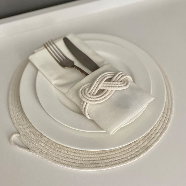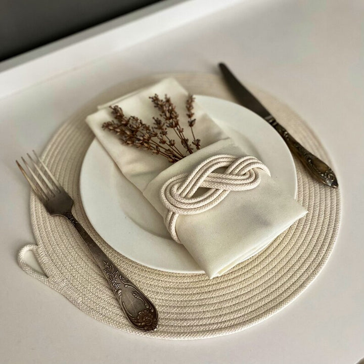 Set of 6 White Cotton Rope Placemats-Table Decor and Dining Essentials