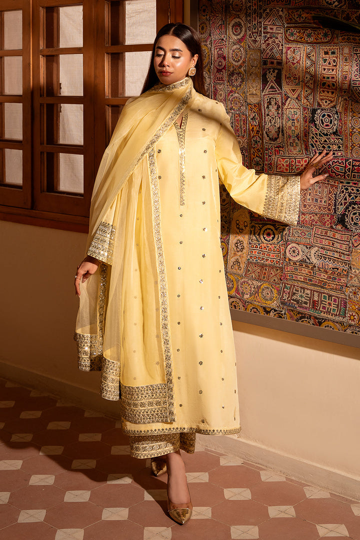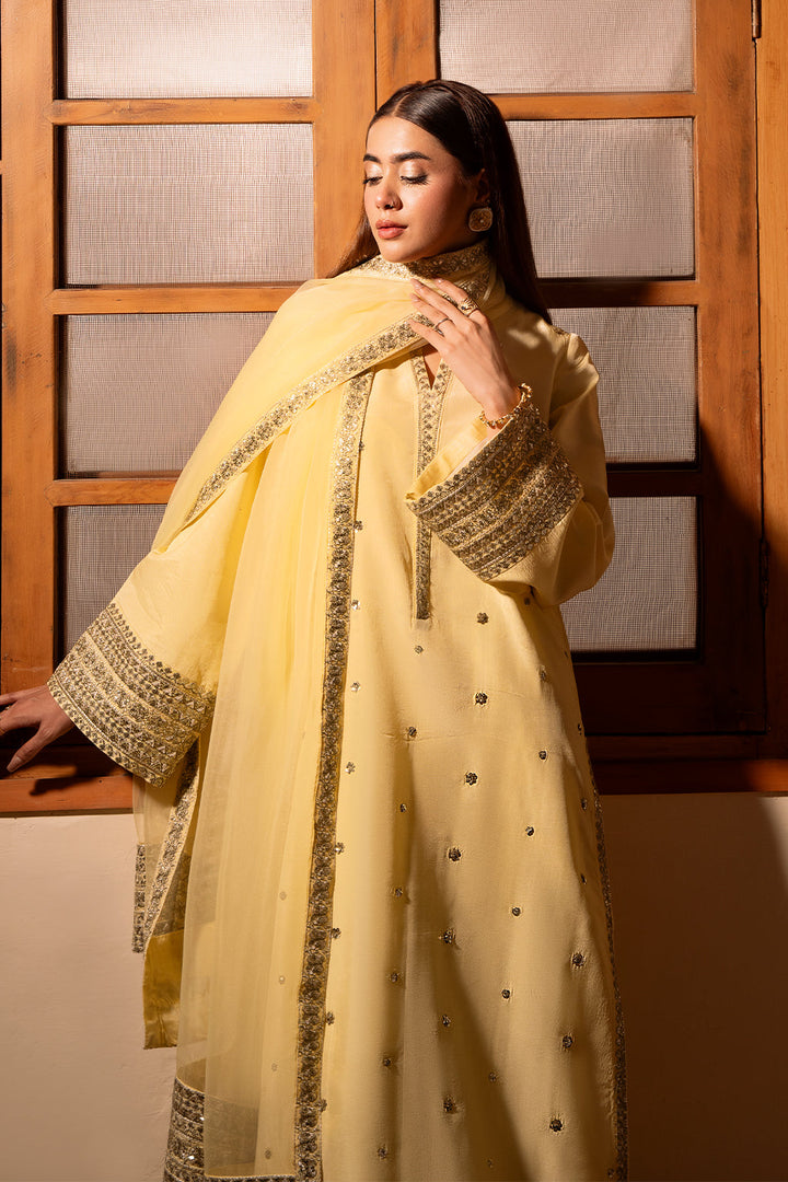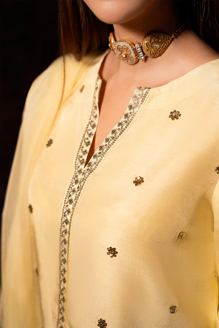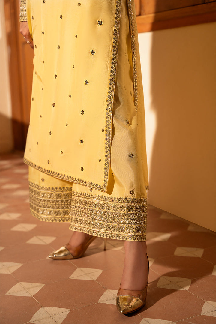 - Trouser: Yellow Tassel Silk with Sequin Spray and Embroidered Sequin