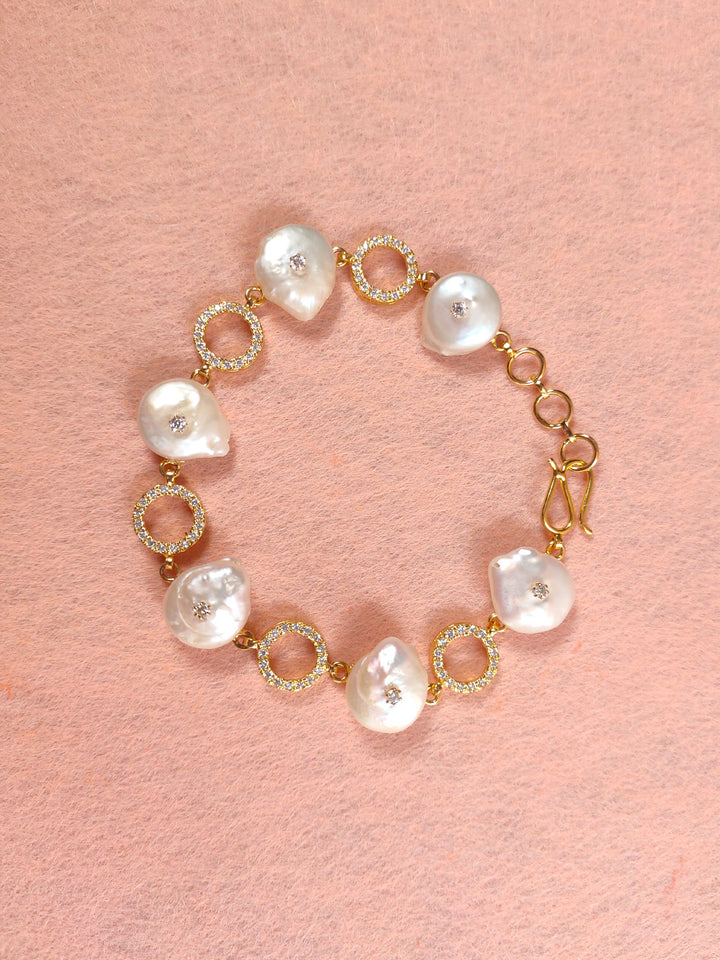 This delicate bracelet adds shine to any outfit. Featuring real freshwater drop shaped pearls alternating with  loops of zircon, giving it the perfect amount of sparkle.