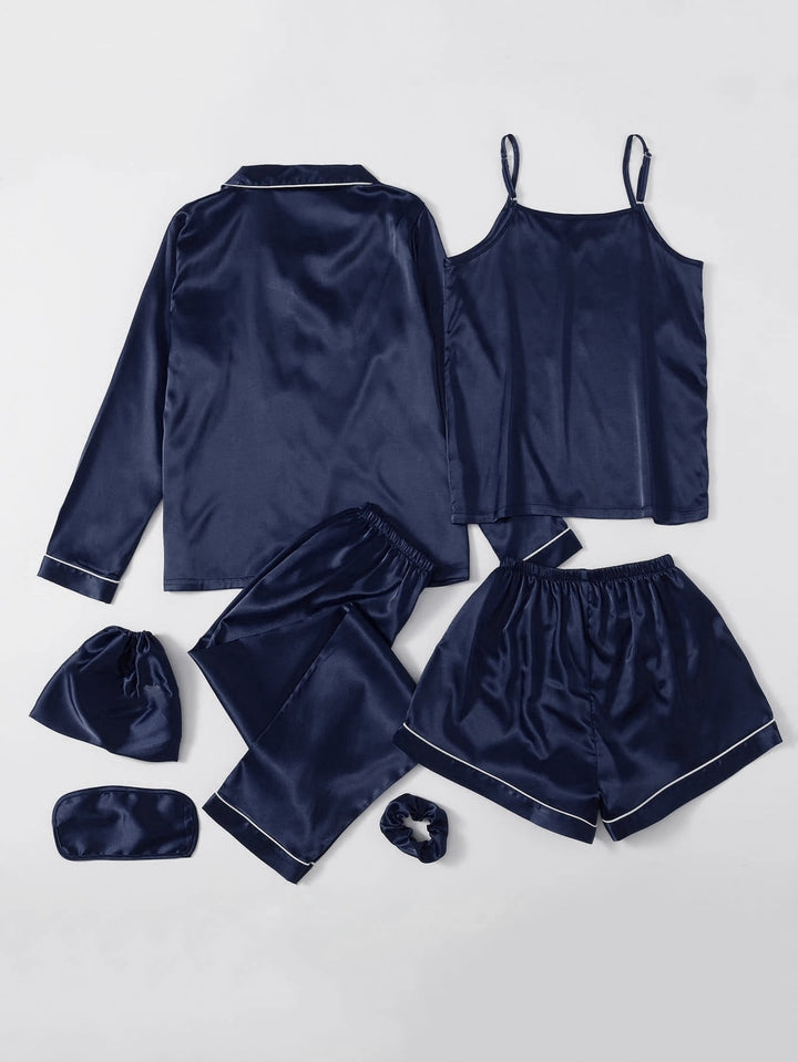 She's Inn Radiance Silky Satin Night Dress For Women and Girls 7 Piece Night Wear- Silky Satin Women's Pajama Sets Button Down Sleepwear Loungewear - Night Dress Nighty with Shirt and Trouser by Mid Night Vibes