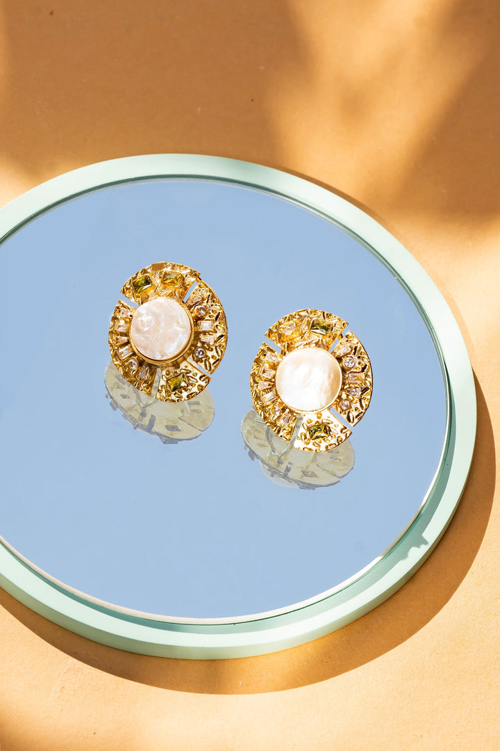 The dazzling Shield earrings have a hand-hammered finish adding uniqueness to the exquisite encrusted setting of white tappers and zirconia exclusively designed for you.