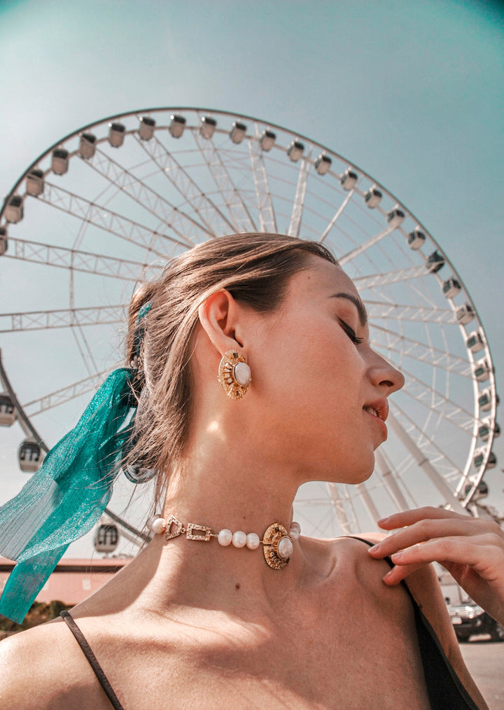 Pair the dazzling Shield necklace with Shield earrings. Hand-hammered finish, adding uniqueness to the exquisite encrusted setting of white tappers and zirconia, exclusively designed for you.