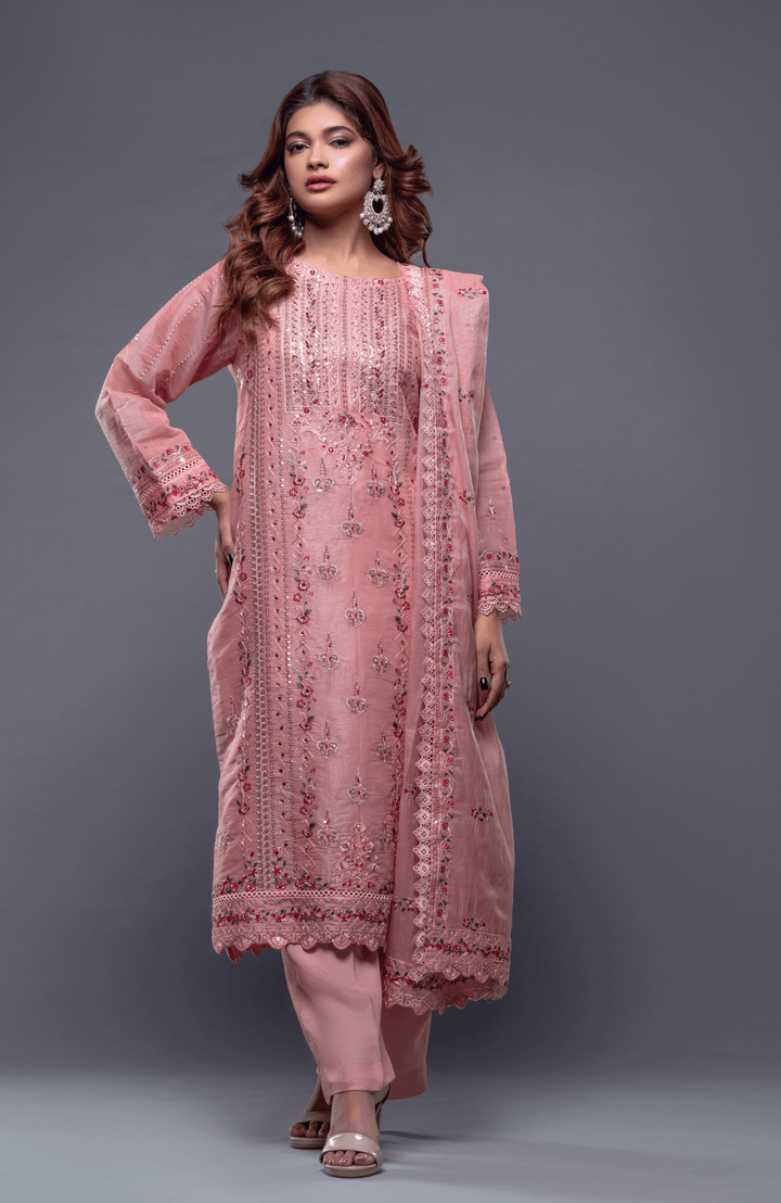 Sparkle your way through the crowd in this delicate and radiant ensemble, featuring head to toe resham and sequin-work on shirt and dupatta.