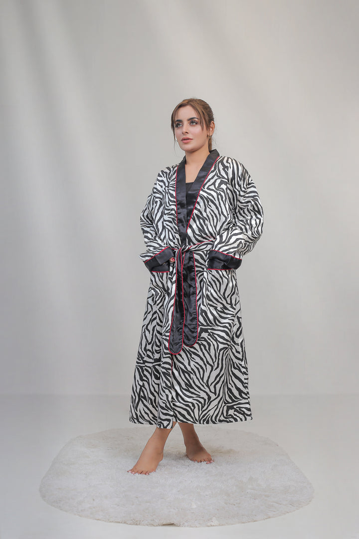 SILKY SATIN ZEBRA PRINT LONG GOWN NIGHTWEAR-SBA-GWN-ZB
