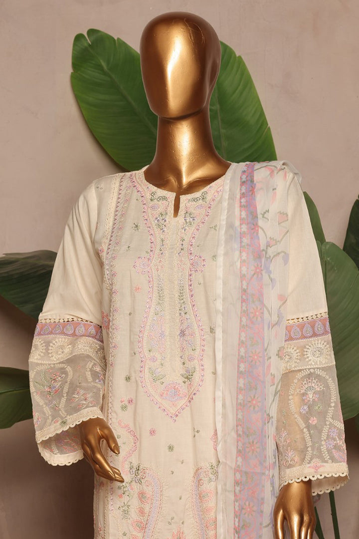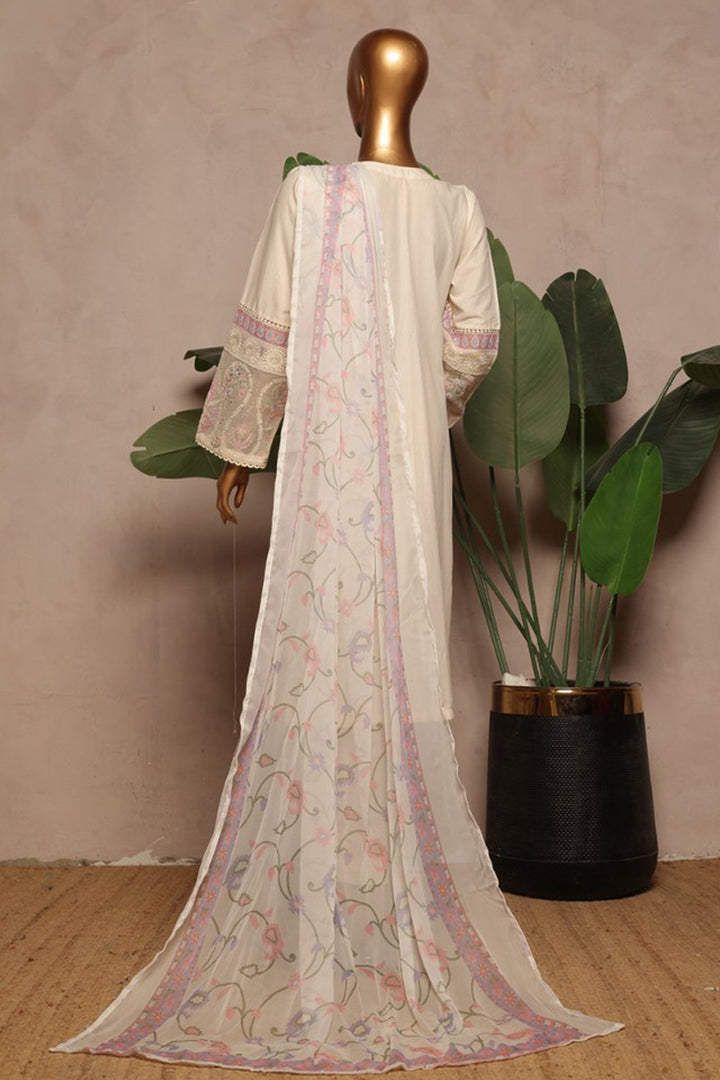 Bin Saeed Stitched 3 Piece Luxury Plain Cotton With Chiffon Dupatta Collection'2025-SMPC-1871-White