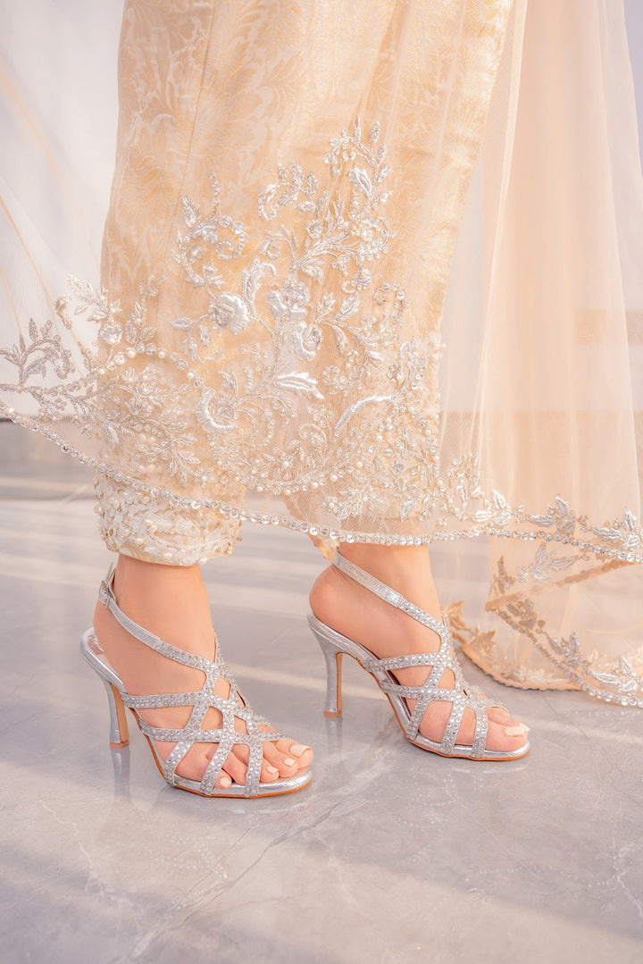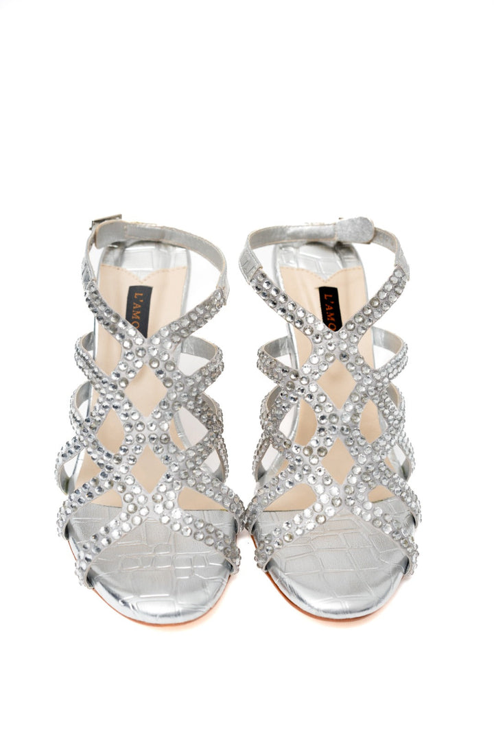 This heavily embellished strass studded pair boasts laser cut details that are intricately embellished with micro-crystals that create a criss-cross pattern. The leather adds extra comfort & cushioning while the high-shine allows you to make the ultimate statement.